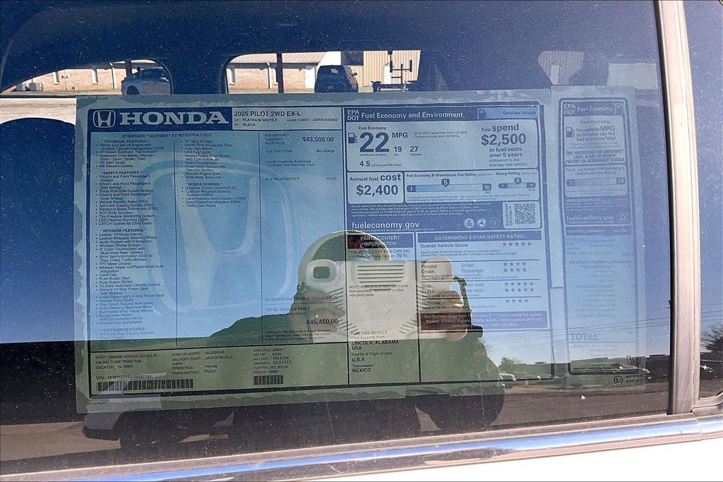 Platinum White Pearl 2025 Honda Pilot EX-L FWD 10-Speed Automatic 3.5L V6 DOHC 24V