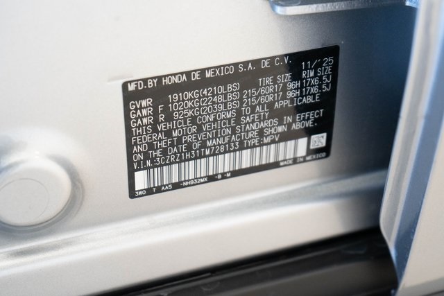Solar Silver Metallic 2026 Honda HR-V LX FWD CVT 2.0L I4 DOHC 16V i-VTEC
