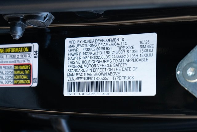 New 2026 Honda Ridgeline RTL