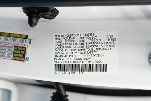Platinum White Pearl 2026 Honda Ridgeline RTL AWD 9-Speed Automatic 3.5L V6 SOHC i-VTEC 24V Brown Leather.